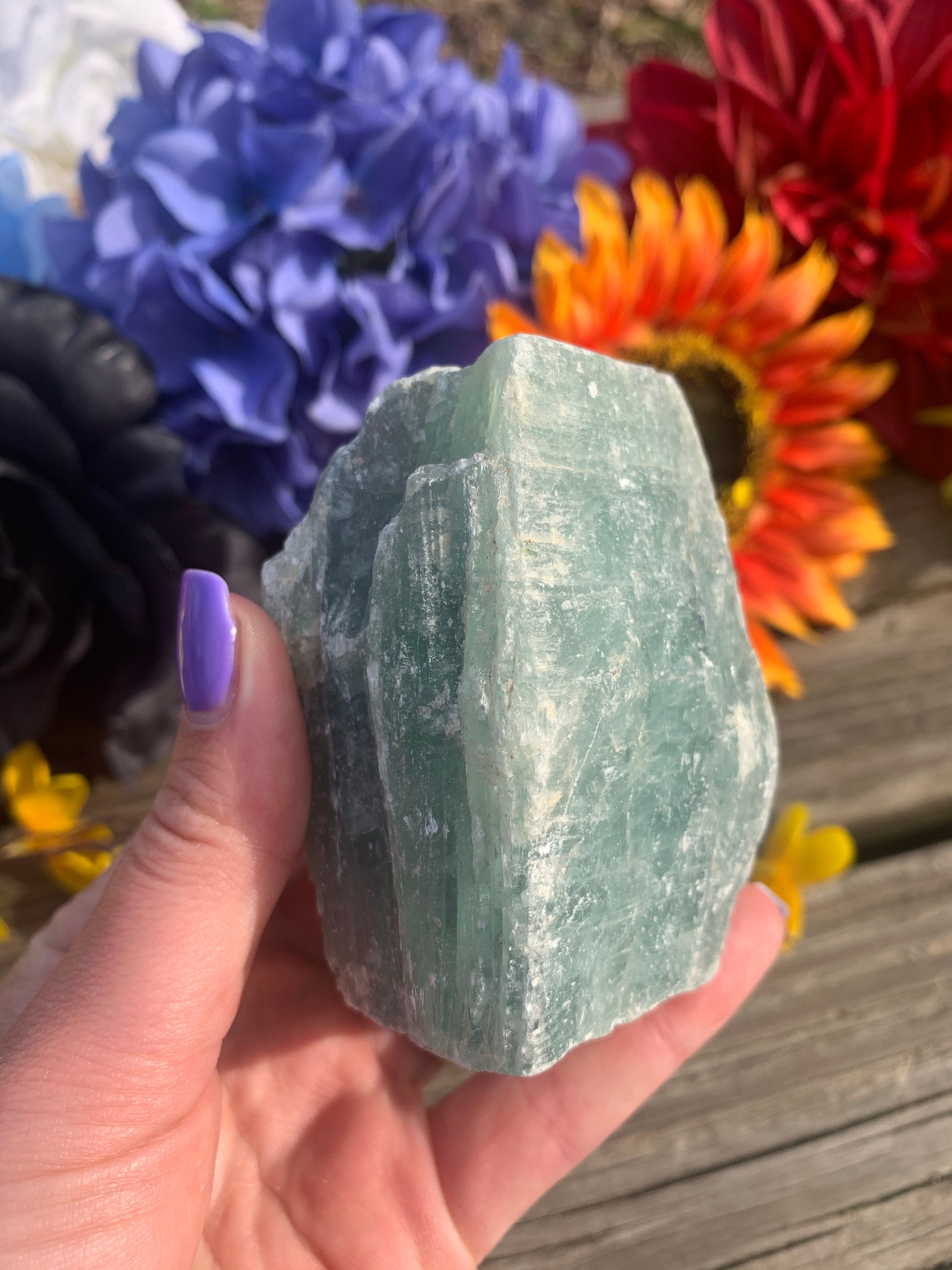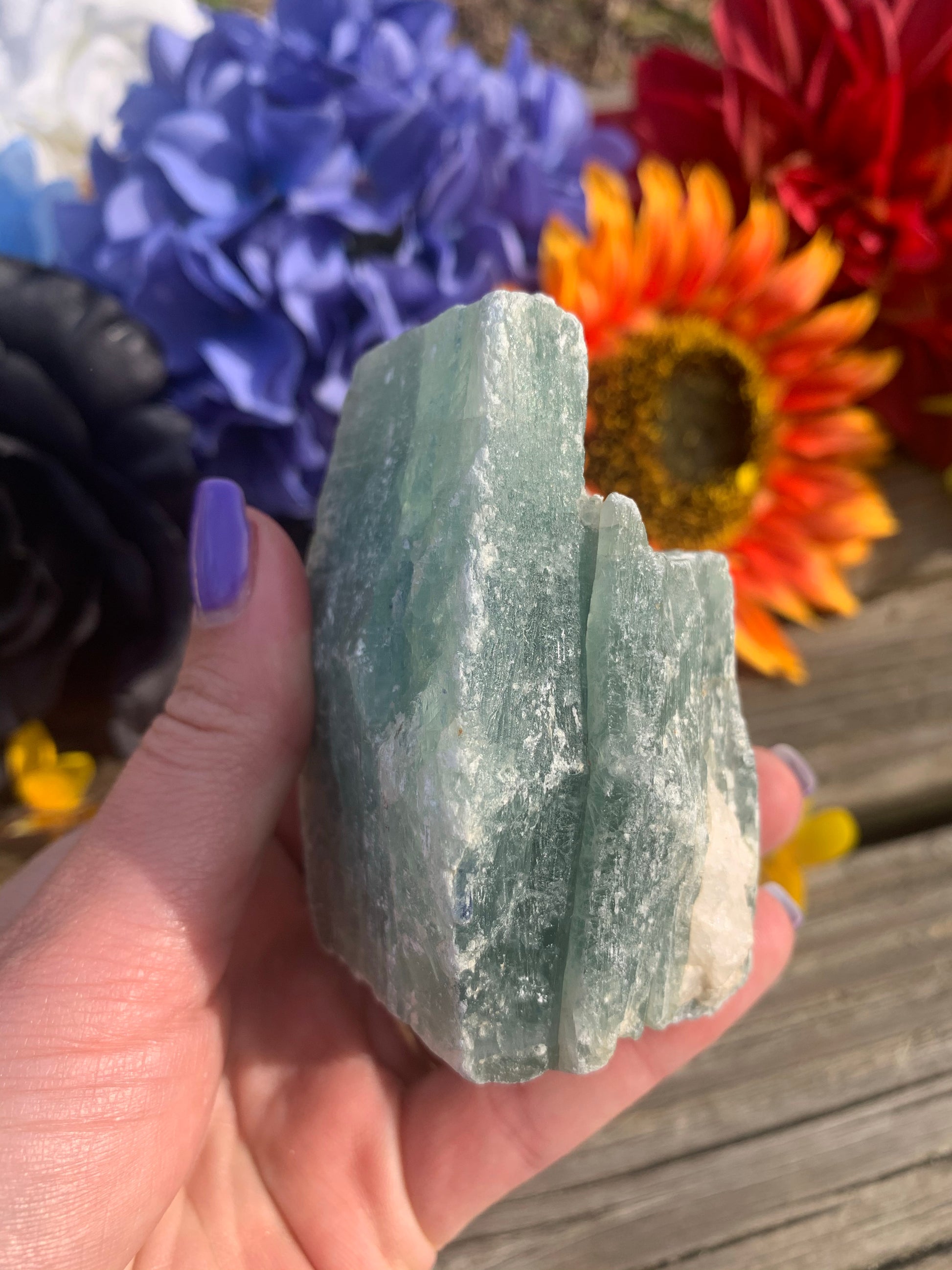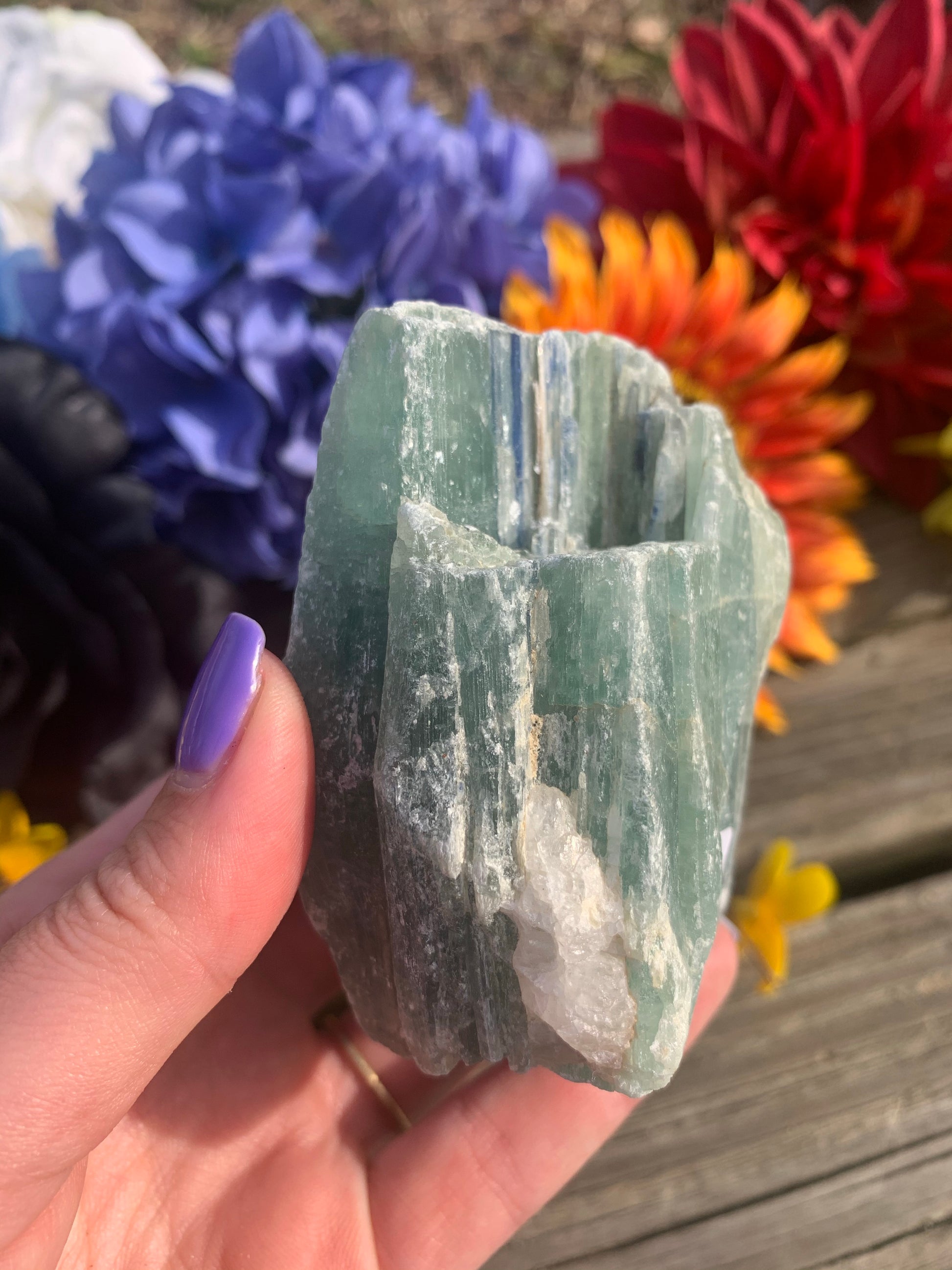 This gemmy Green/Blue Kyanite offers activation and balance within the throat and heart chakra! Opening us up to speak our truth through love and healthy communication!