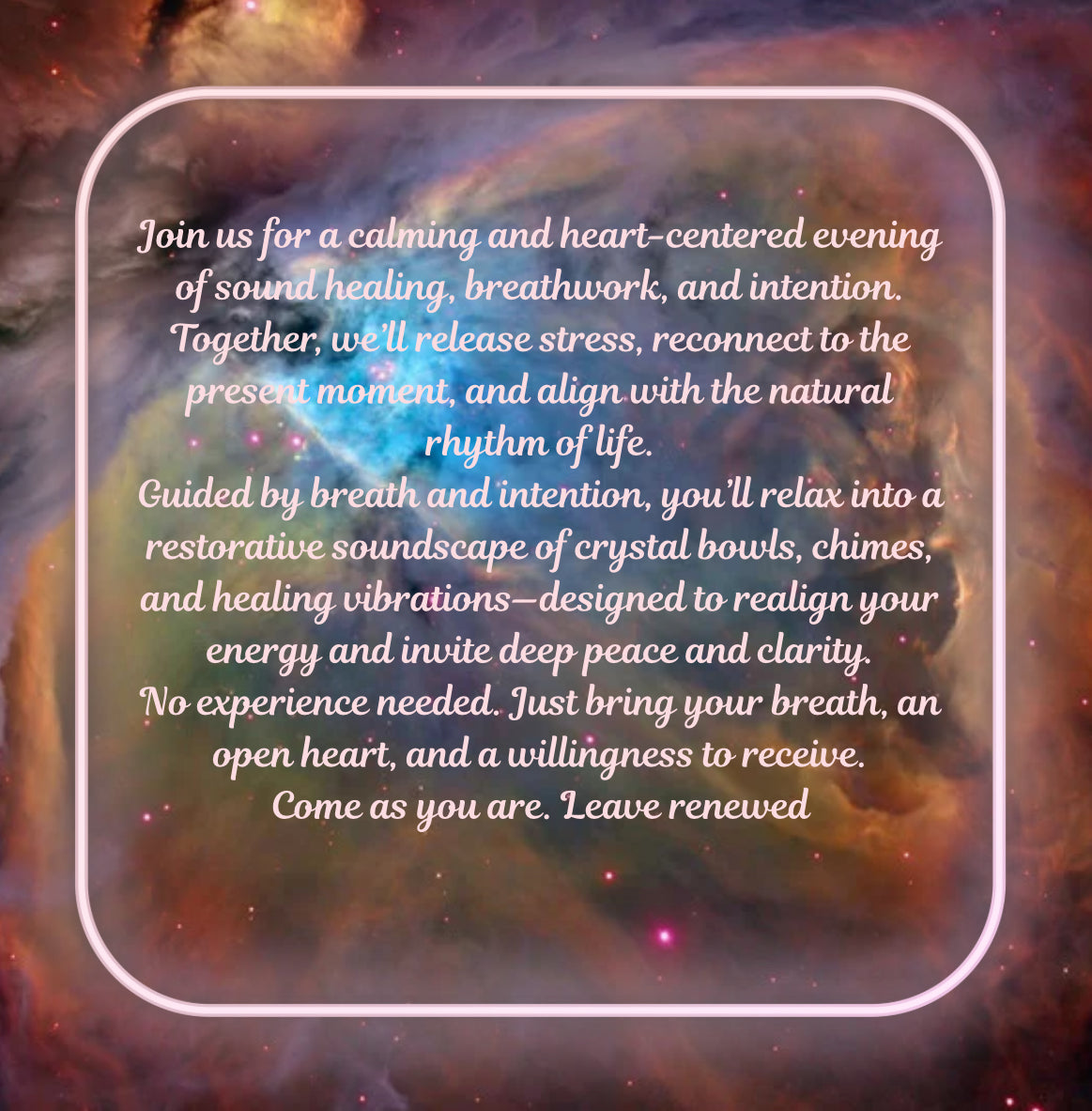 ✨ Sacred Healing Circle ✨ Sound • Breath • Alignment • Abundance Join us for a transformative evening of deep healing and energetic alignment as we come together in a sacred circle guided by the power of sound bowls and conscious breathwork