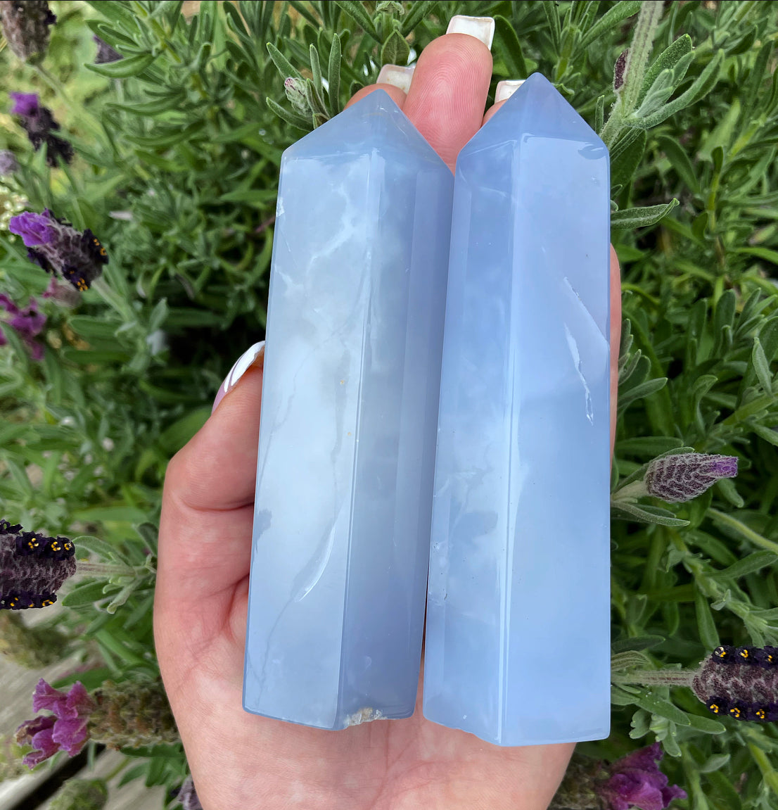 Blue Chalcedony gives off feelings of light-heartedness and optimism. Improves self-perception.