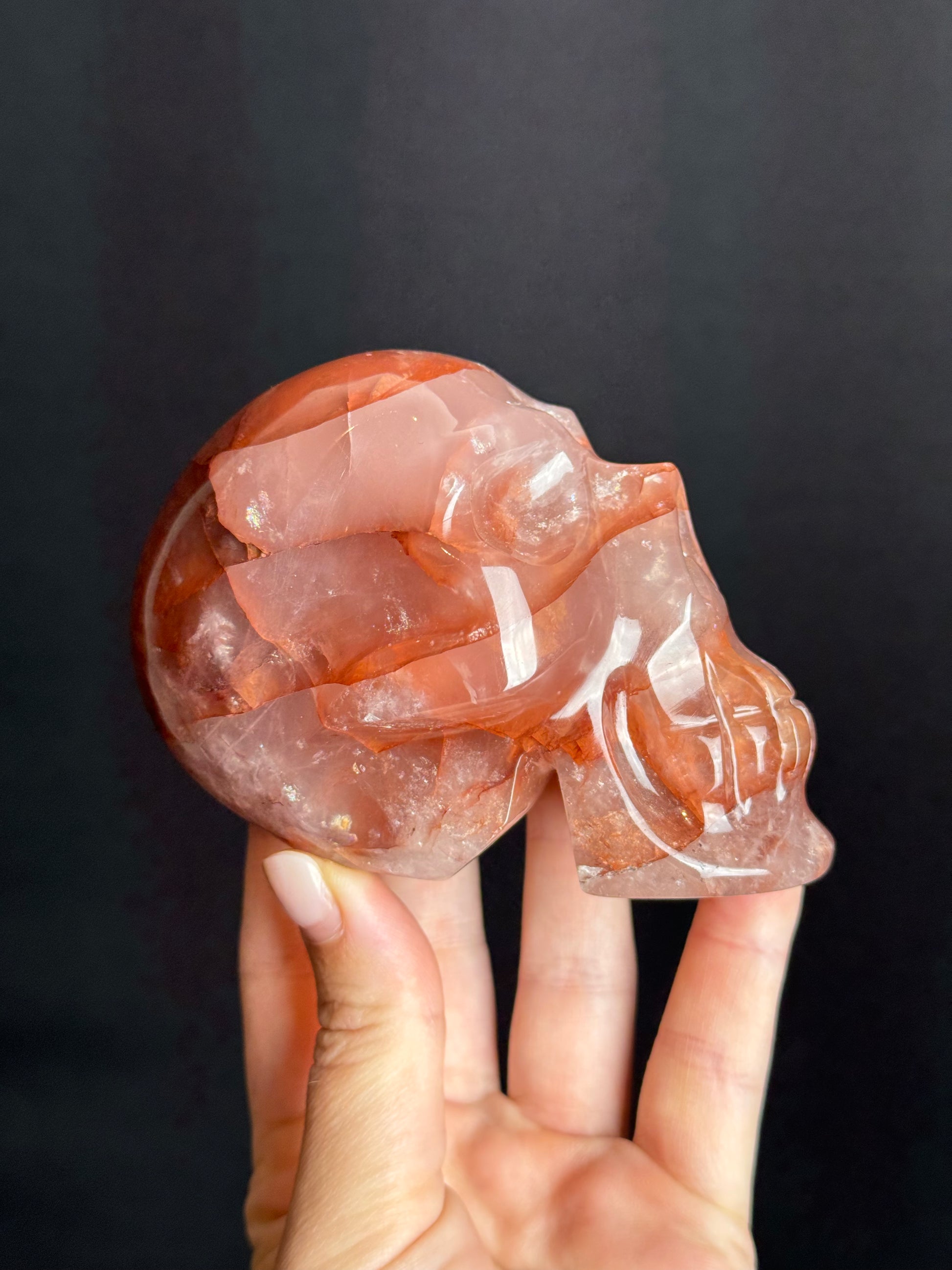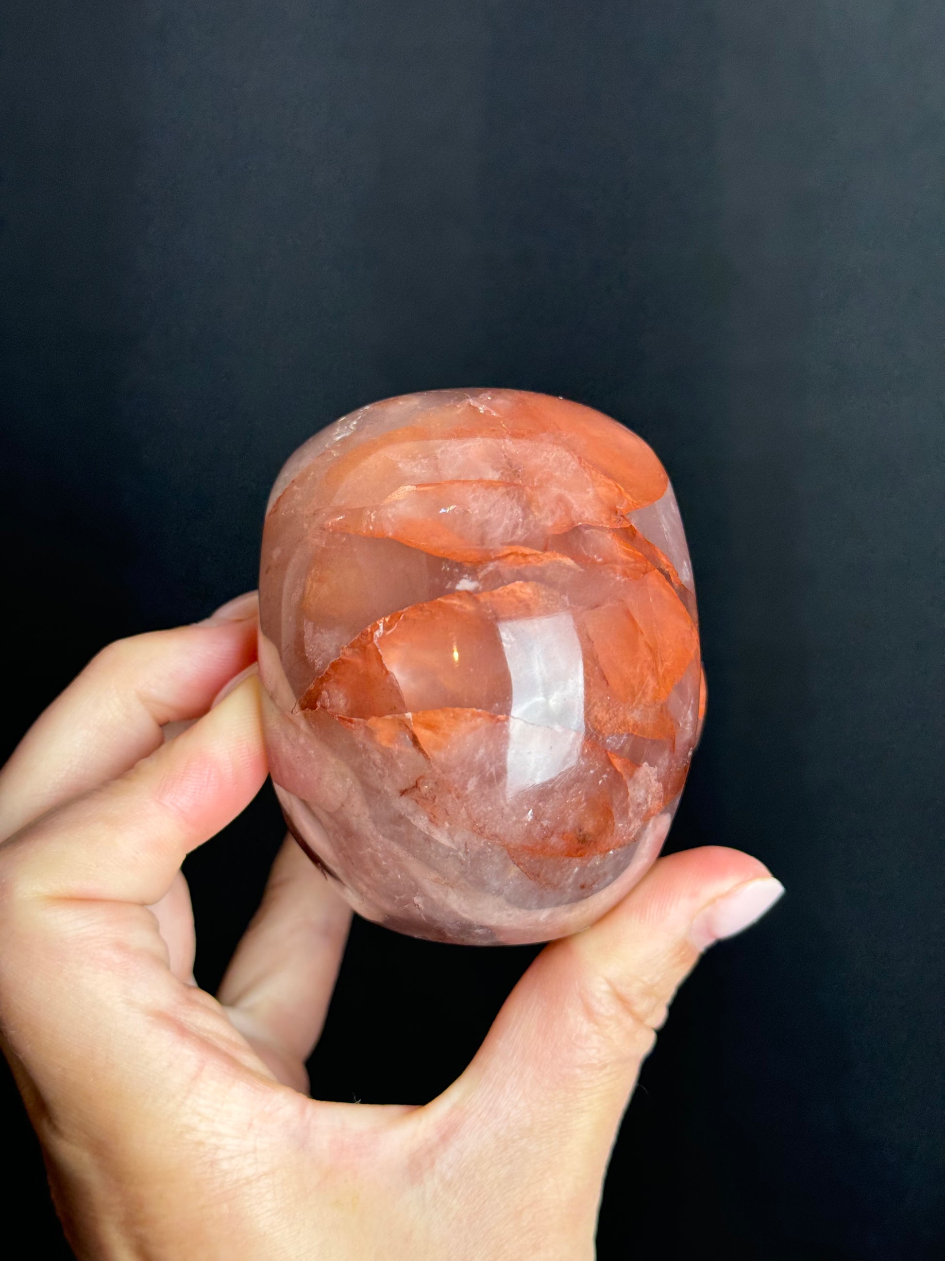 Fire Quartz is a form of Hematoid Quartz that charges the Root Chakra with the will of Fire. It helps individuals realize their dreams, desires, and take courageous steps in new directions. This crystal blends the amplifying properties of Quartz with the stabilizing properties of iron in the form of hematite. The color of Fire Quartz ranges from pale pinkish orange to a dark rust color, depending on the iron content. It helps balance the body, mind, and spirit, aligns the Root Chakra to the Crown Chakra, reconnects individuals with their true selves, and promotes grounding and stabilization.