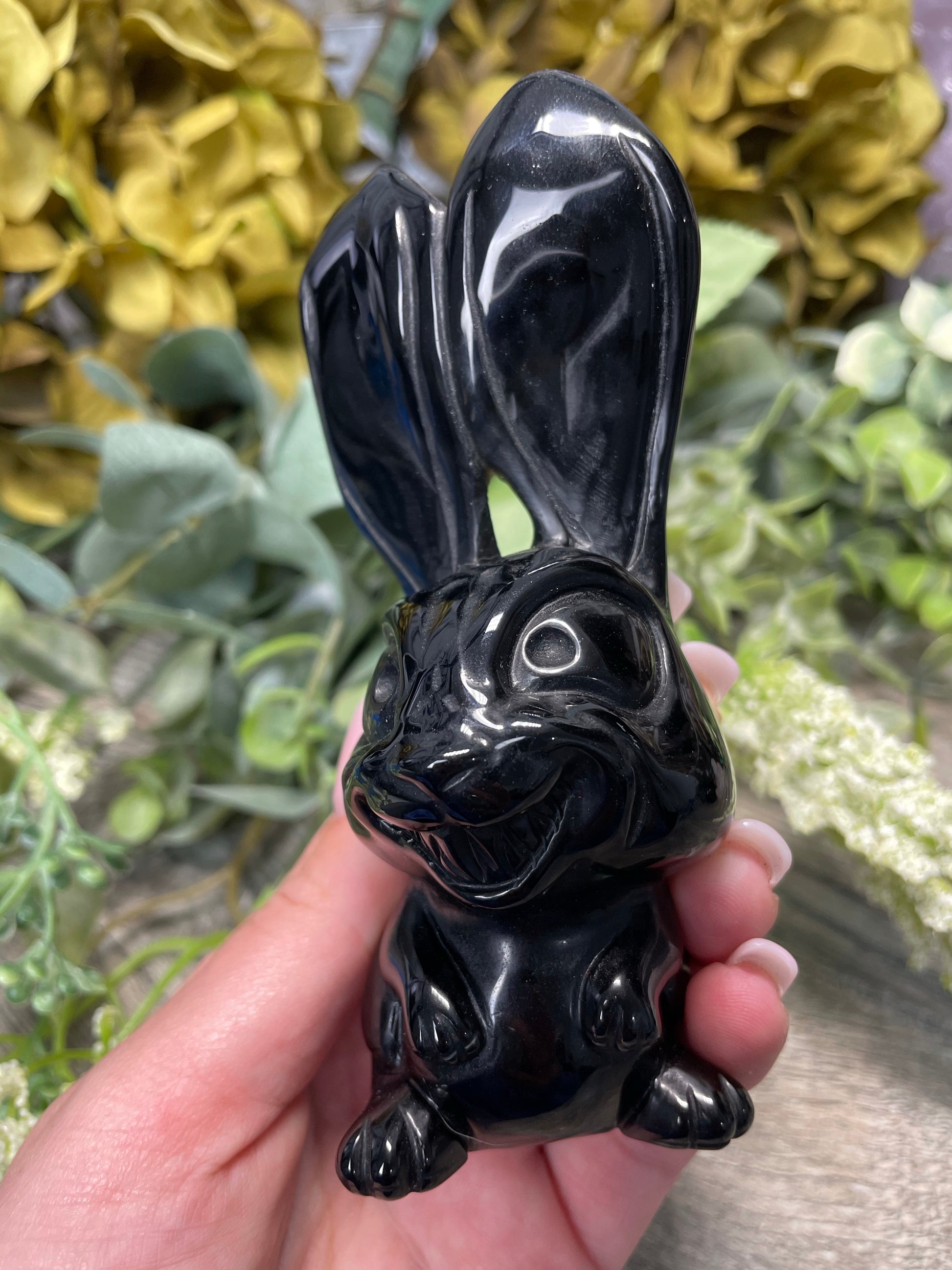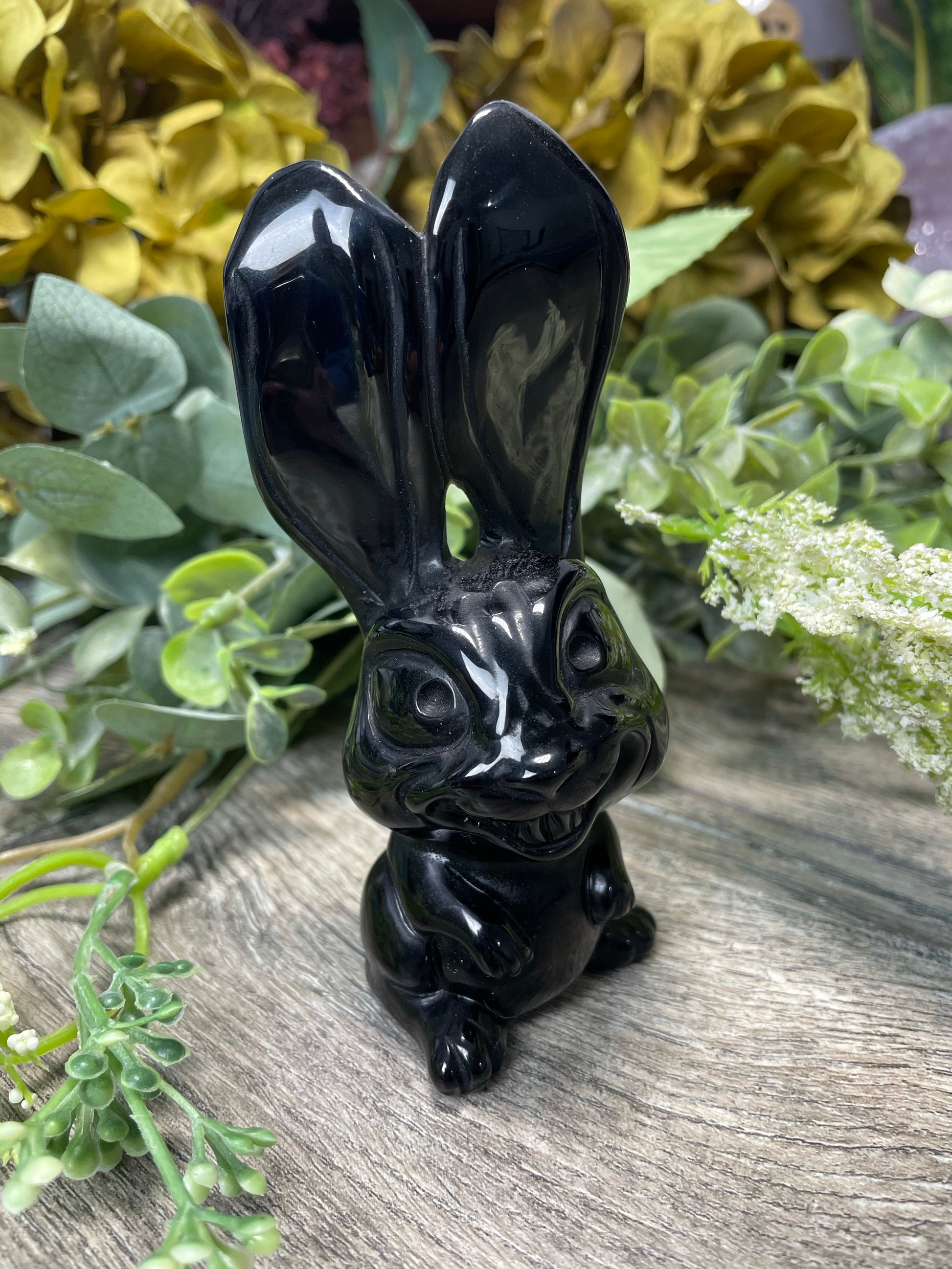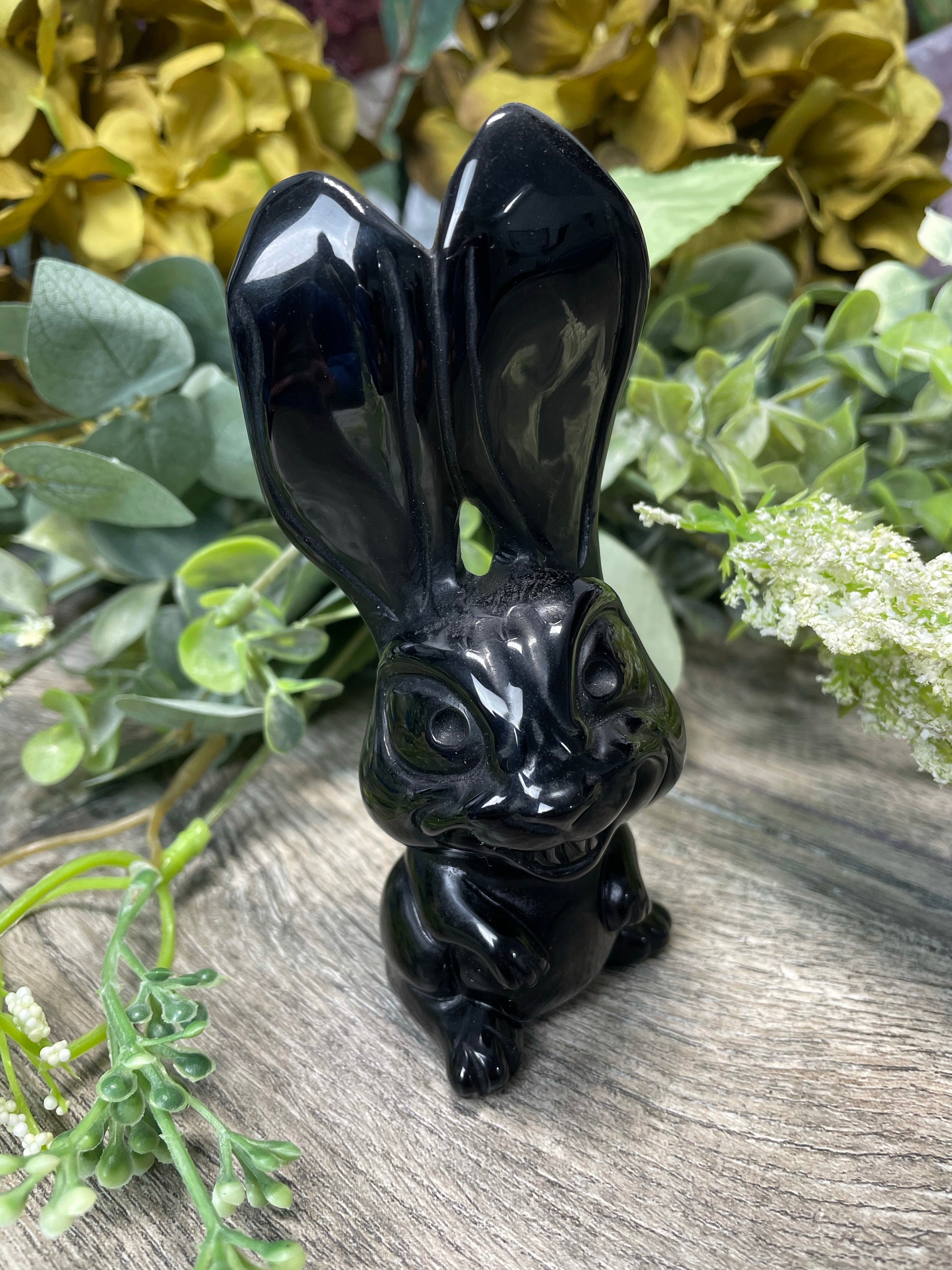 Absorb negative energies with this fierce obsidian bunny! Obsidian is a root chakra crystal that helps ground you and stabilize your energies!