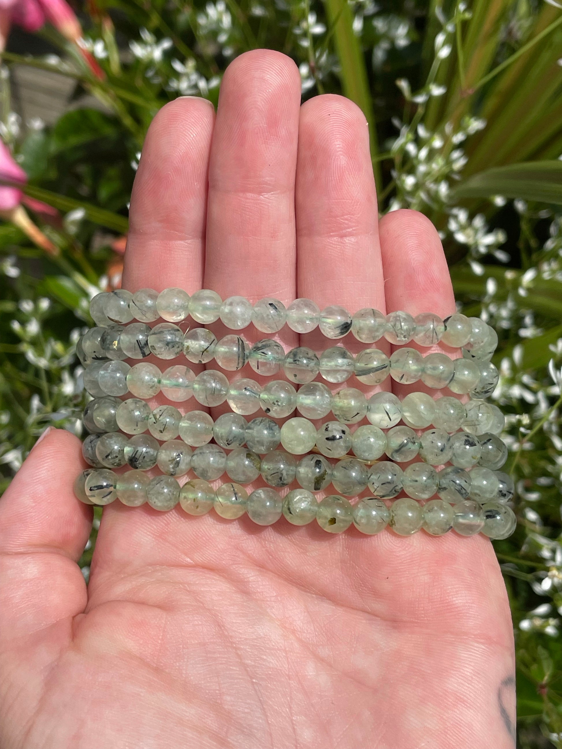 Prehnite and epidote encourage deep love and healing throughout the heart chakra! They will increase the brain's ability to process information, receive information, and increase mental alertness. It will help you process hard truths, and develop an innerstanding of who you truly are
