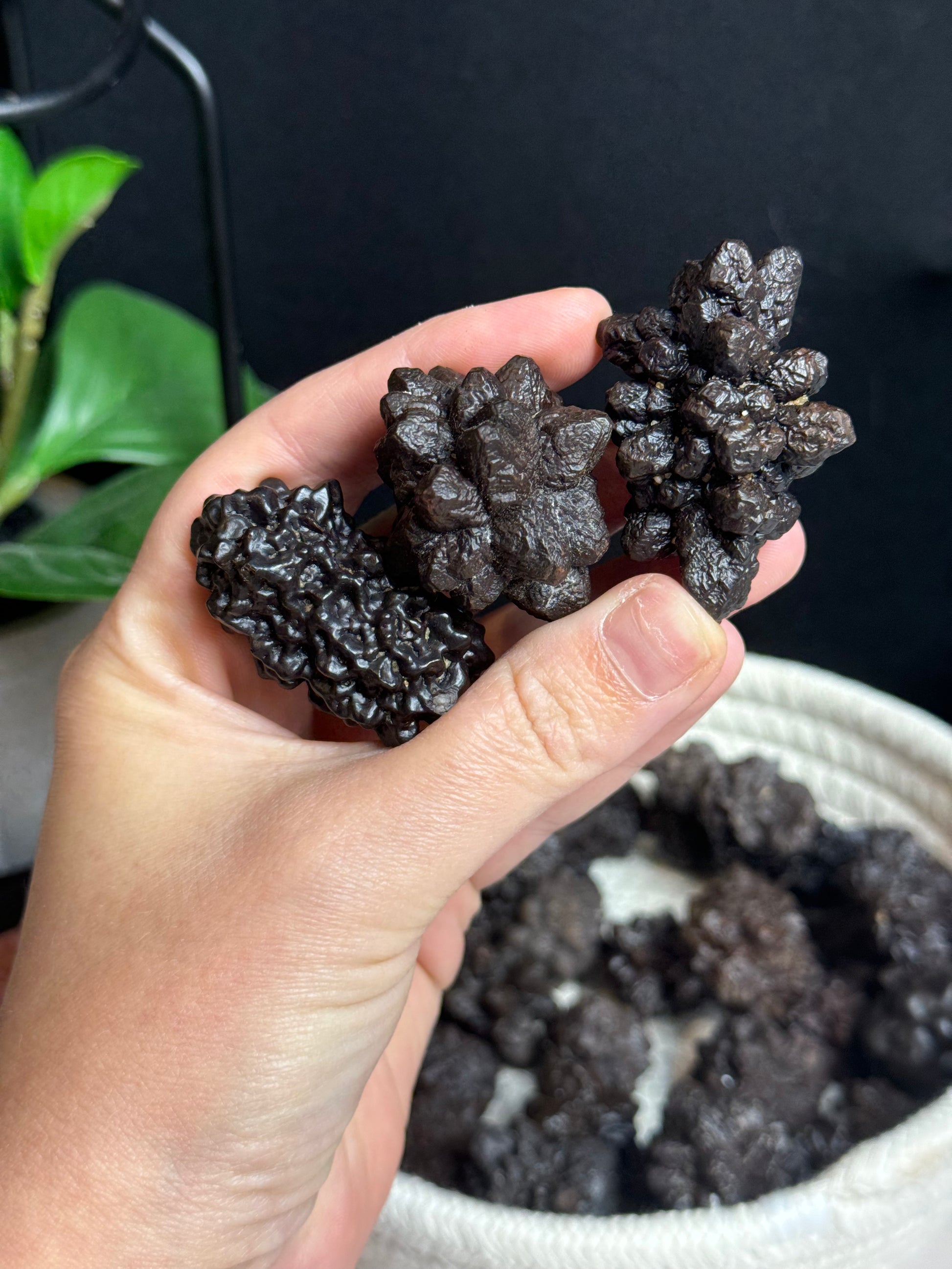 These rare minerals are found in Egypt 🌵 It is a pseudomorph of Limonite and Hematite after Pyrite and Marcsasite. The Limonite & Hematite has taken and morphed over the original crystalline structure of the Pyrite & Marcasite. So in other words we have a powerful evolution of this high vibe grounding babe going on!