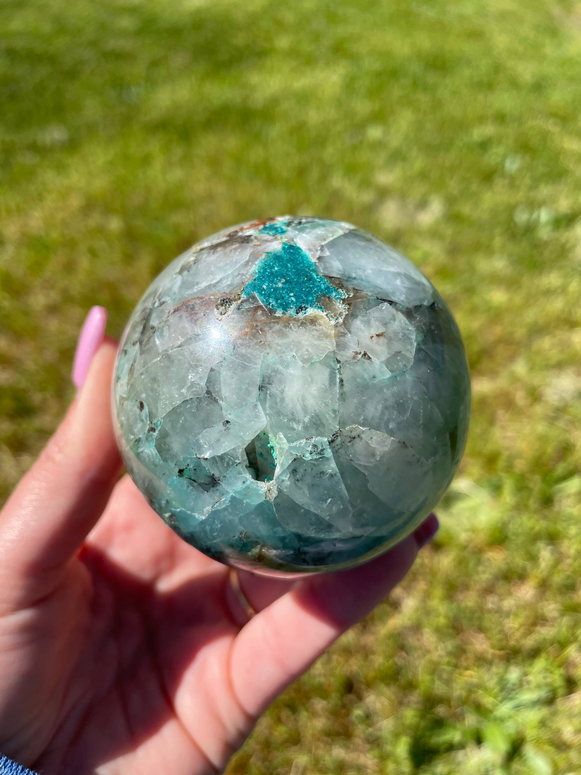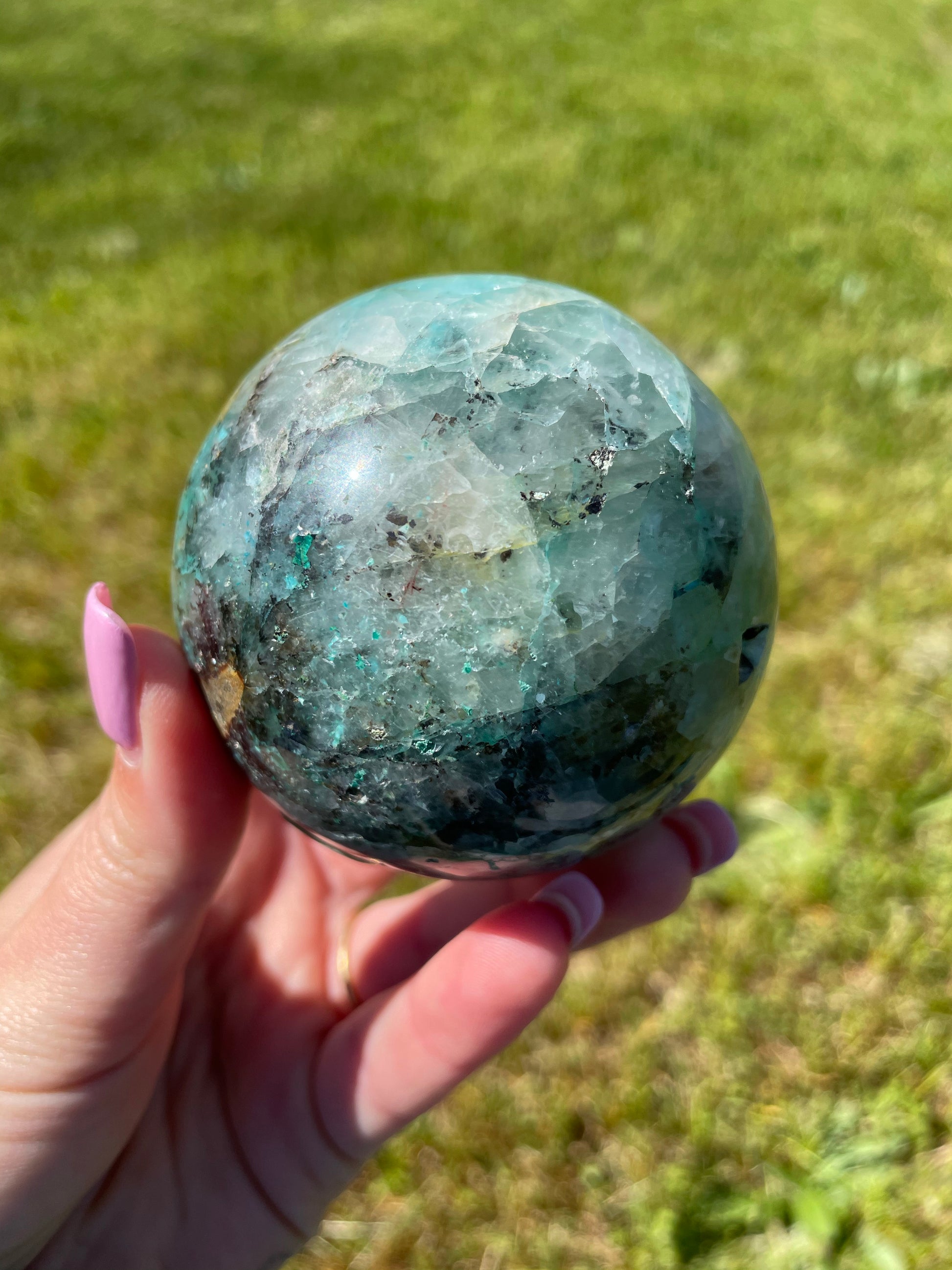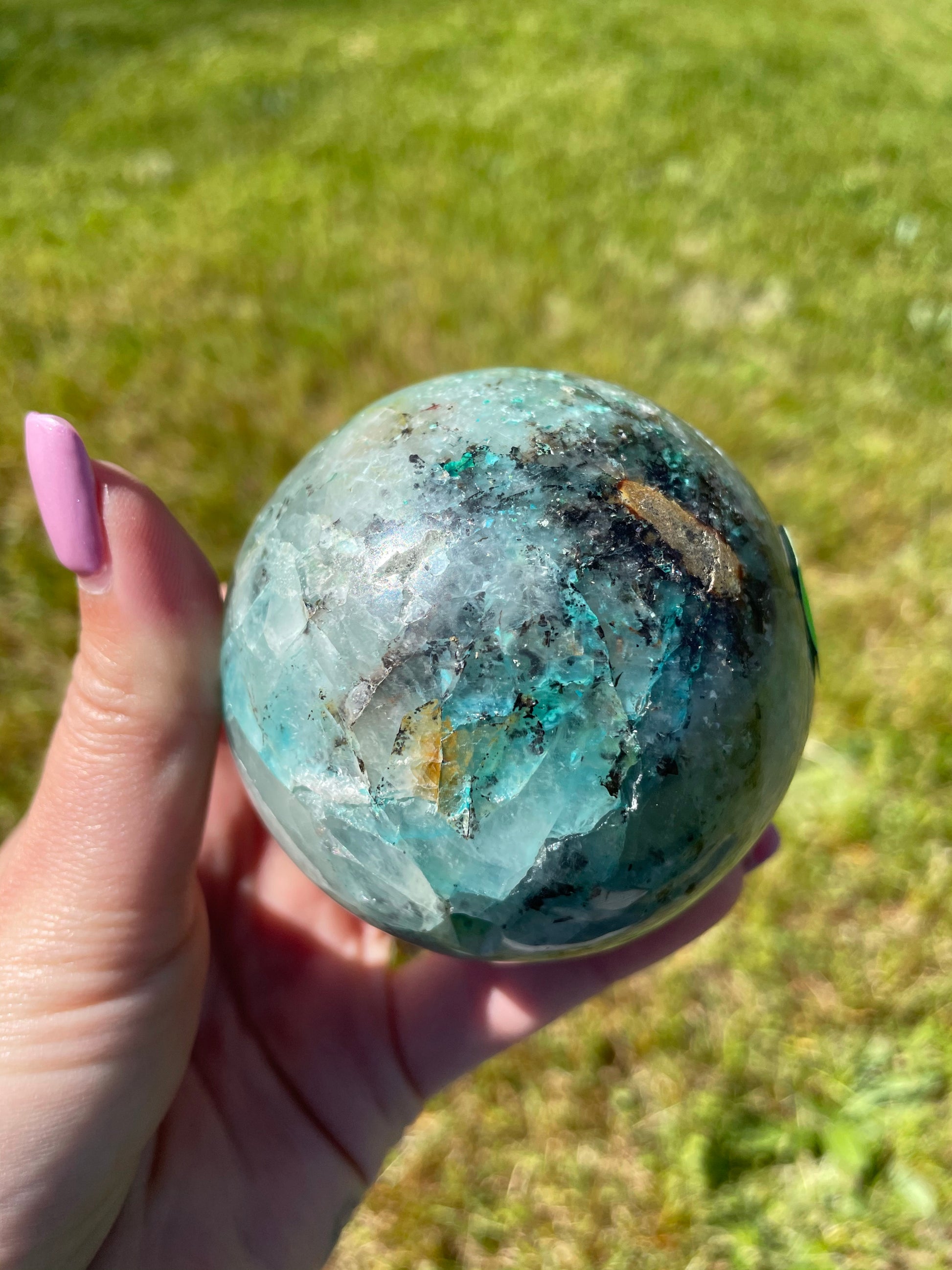 Quantum Quattro is a magical combination of Shattuckite, Chrysocolla, Malachite, Dioptase, and Smokey Quartz!