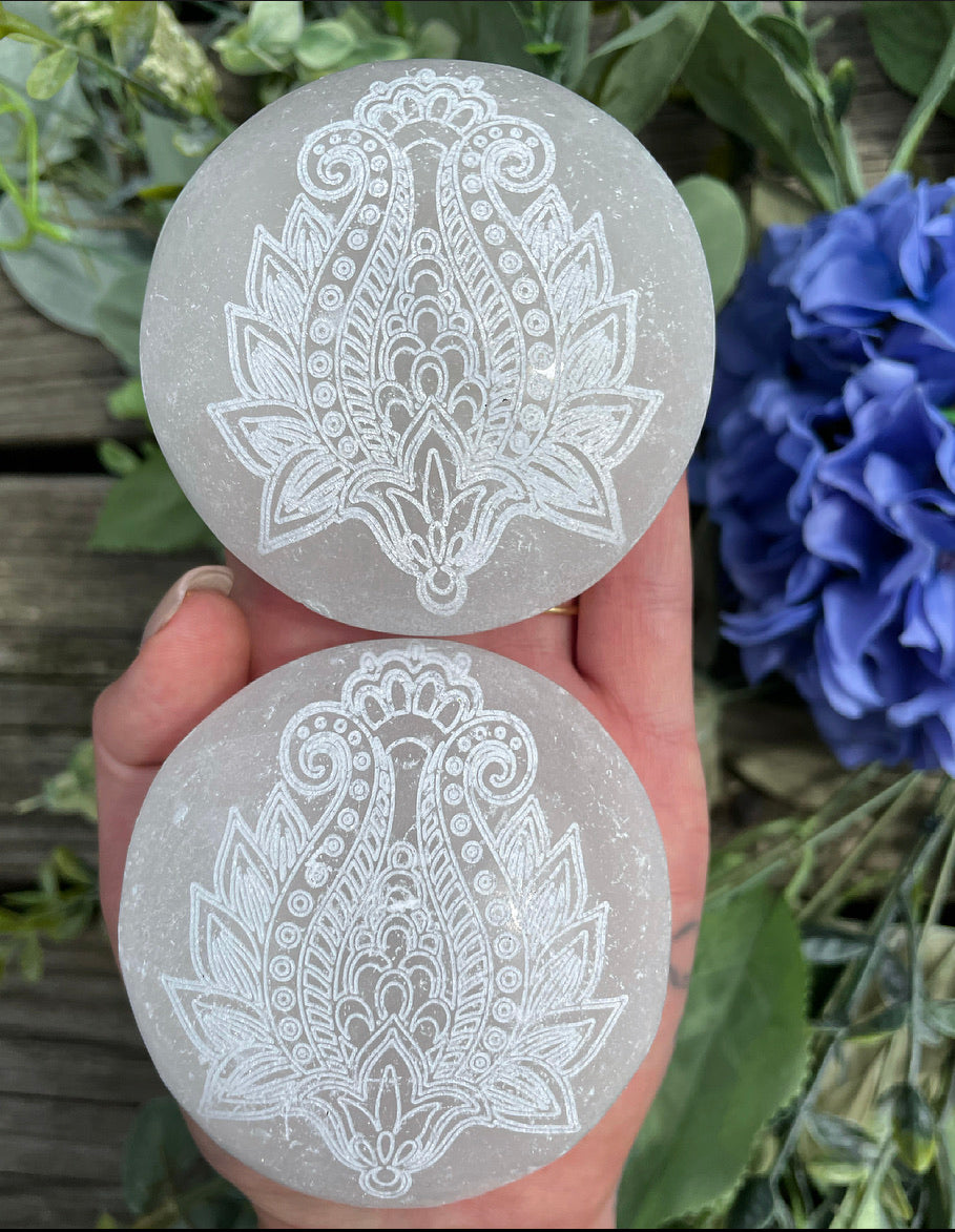 Selenite not only cleanses energies within your environment, aura, and other crystals but also helps revitalize and charge them as well!